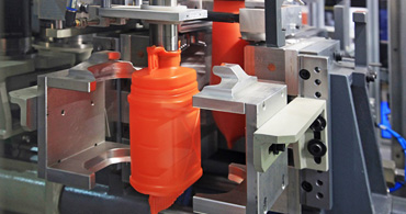Blow moulding is a manufacturing process where melted plastic is inflated inside a mould to form.